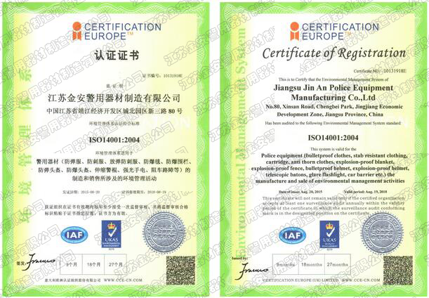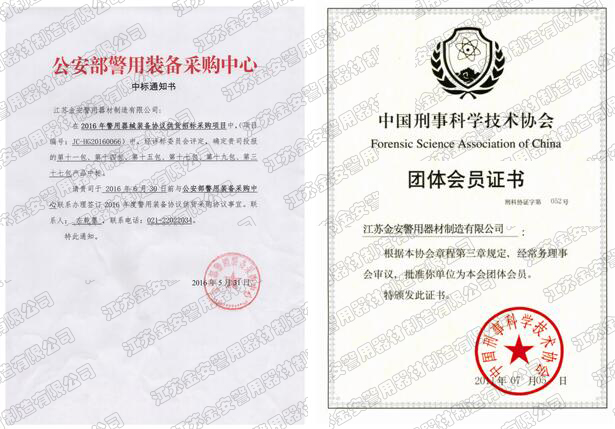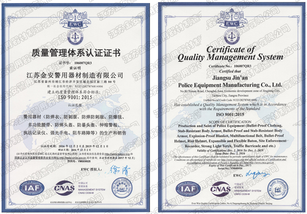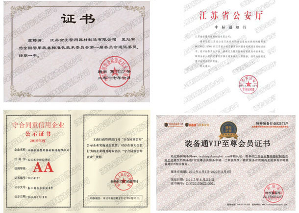 第一批新型單警裝備定點(diǎn)生產(chǎn)企業(yè) 公安部警用裝備采購中心協(xié)議供貨單位 公安部防彈防刺服生產(chǎn)定點(diǎn)企業(yè) 江蘇省公安廳防彈衣入圍企業(yè) 江蘇警用裝備行業(yè)協(xié)會會員單位 中國刑事科學(xué)技術(shù)協(xié)會團(tuán)隊會員單位 中國安全防范產(chǎn)品行業(yè)協(xié)會會員單位 靖江市保安器材行業(yè)協(xié)會常務(wù)理事單位 全國警用裝備標(biāo)準(zhǔn)化技術(shù)委員會通訊委員 江蘇金安警用器材制造有限公司始創(chuàng)于九十年代初,公安部防彈防刺服生產(chǎn)定點(diǎn)企業(yè)、公安部警用裝備采購中心2..
